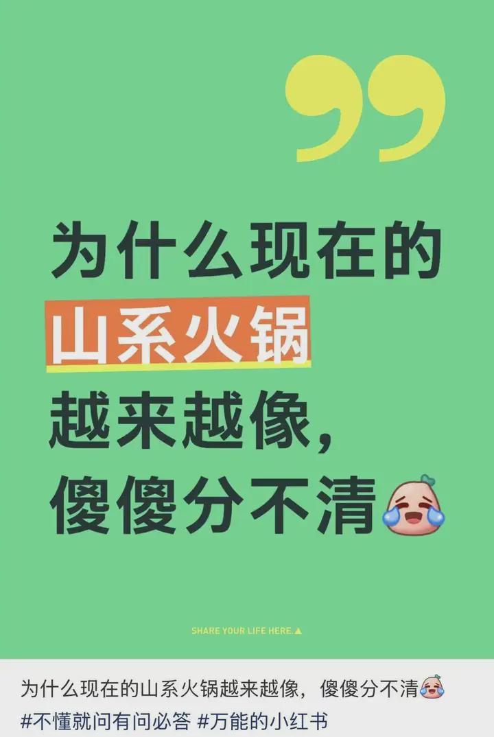 上周末和朋友聚餐,有人提议去吃之前爆火的山系火锅,但可能要提前叫号。结果手机一搜,名字里带“山”的火锅店冒出一大片,而且都不用排队。