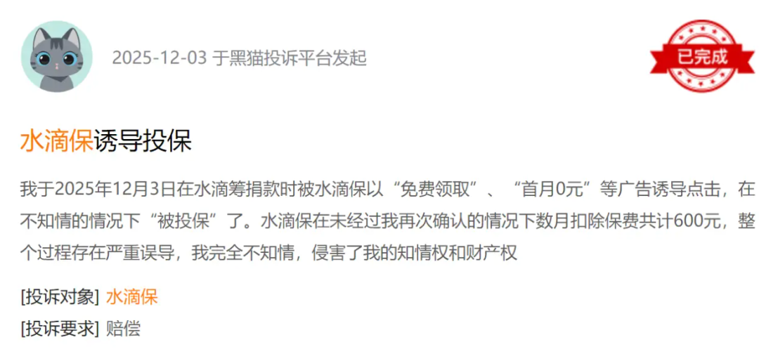 在黑猫平台,搜索“水滴保”的相关投诉已高达2000多条。