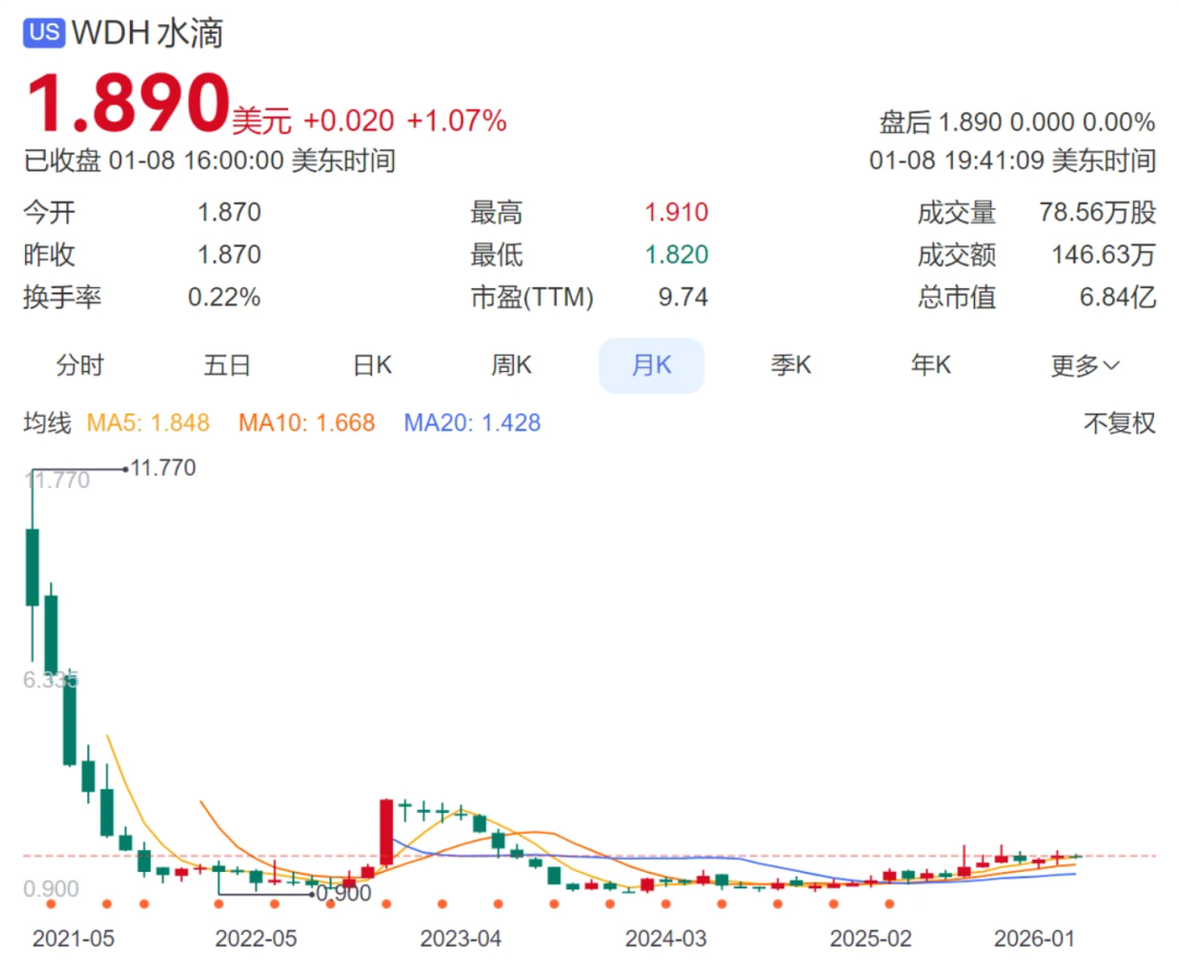 但诡异的是,股价走势却相反,上市即巅峰,如今已跌超八成,市值只剩6.84亿美元。