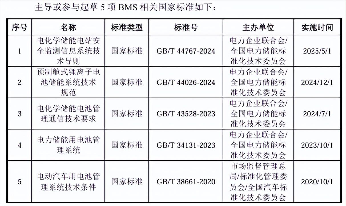 截至报告期末,公司累计主导/参与国家/行业/团体/地方标准31项,其中主导或参与起草5项BMS相关国家标准、6项行业标准,承担或参与国家级研发课题2项、省级研发课题4项。