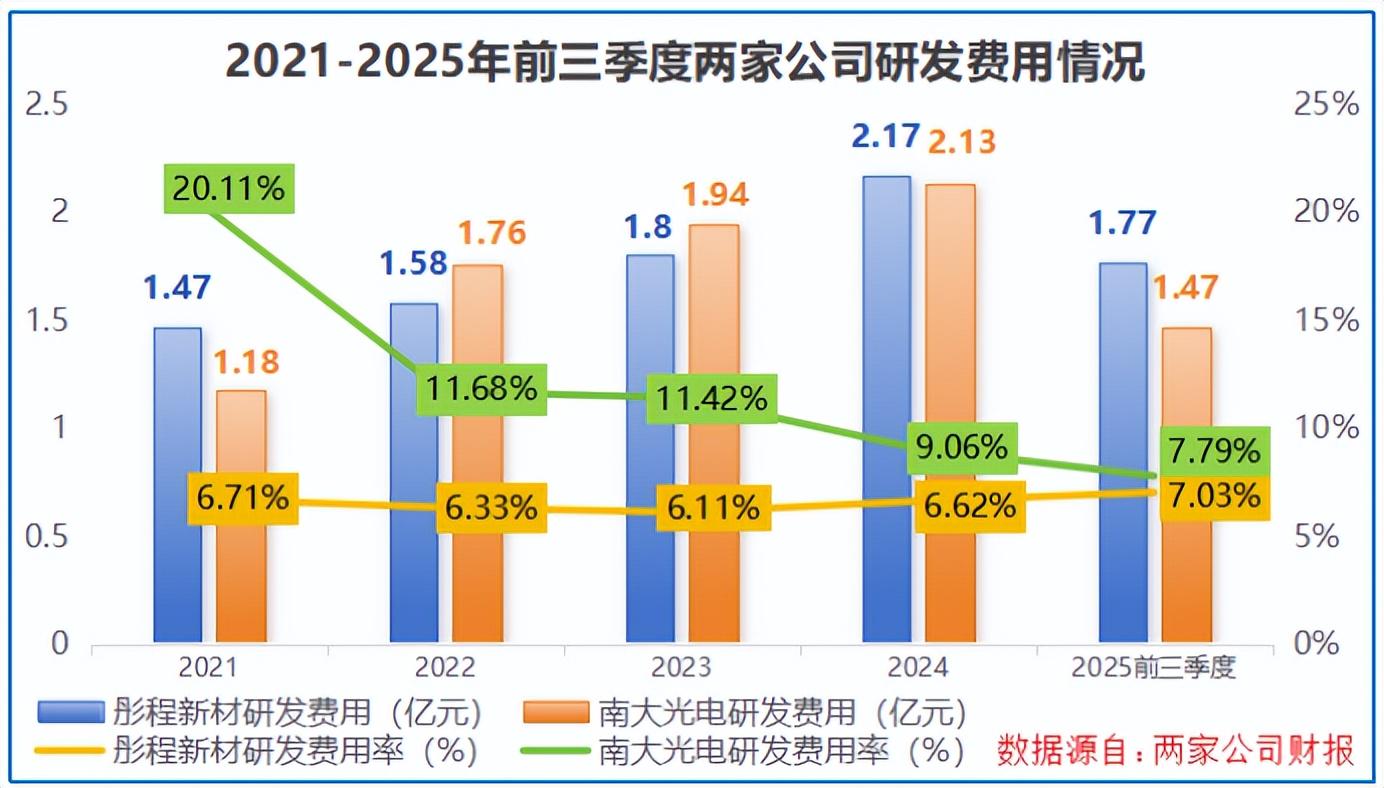 南大光电一直舍得砸研发,即便在2024年研发费用率有所回落,仍达到9.06%,高于同期彤程新材的6.62%。