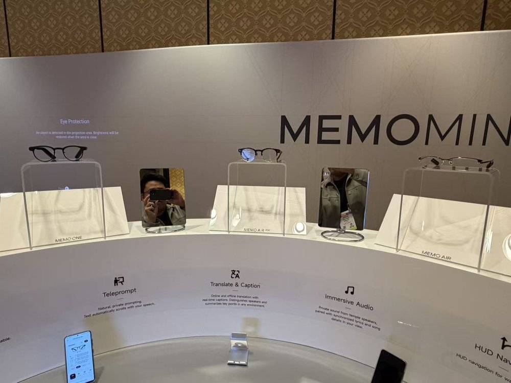 其中让笔者印象较为深刻的是极米科技,这个过去长期深耕投影仪的品牌,在今年的CES展会上推出子品牌MemoMind,并展示了三款AI眼镜产品,覆盖从双目到单目,再到轻量化的需求谱系。