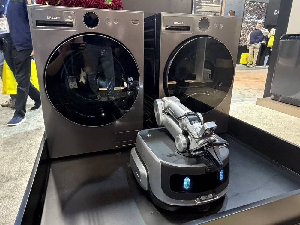 又比如今年追觅所展示的“AI具身洗护机器人”。它可以通过机械臂上的视觉、触觉等感知手段,去按照衣物的材质及颜色进行分拣,并完成从“置物-洗衣-烘干”的全流程接管。