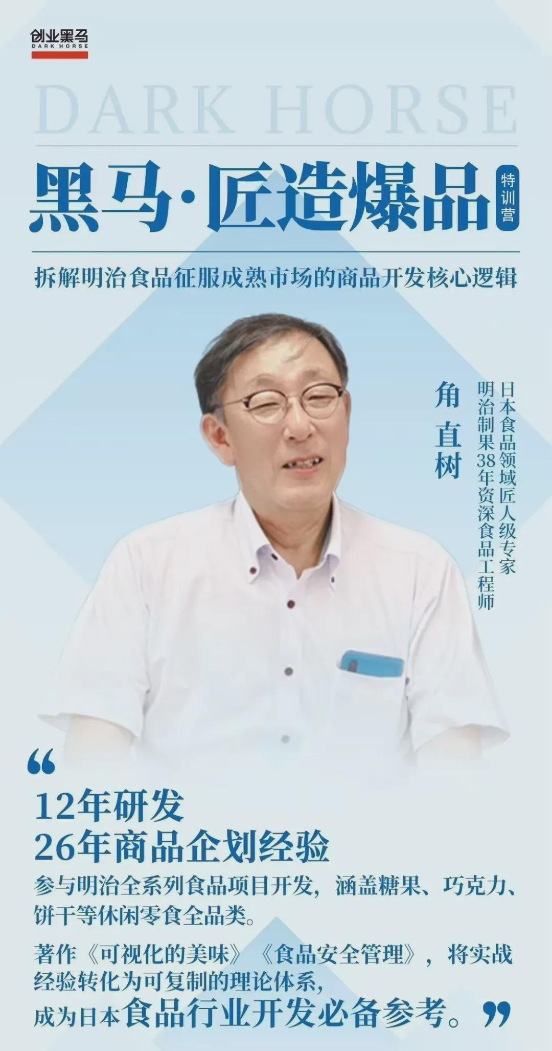 报名「黑马·匠造爆品课特训营」,这次我们邀请到了:明治食品“爆款教父”角直树。