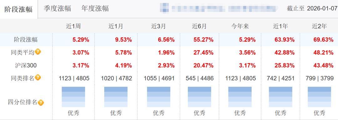 先来上业绩,长江长扬混合发起A今年以来涨5.29%,近1年涨63.93%。刚过来的2025年度涨幅超过51.36%,这个涨幅跑赢了同类平均和沪深300指数,相当亮眼。