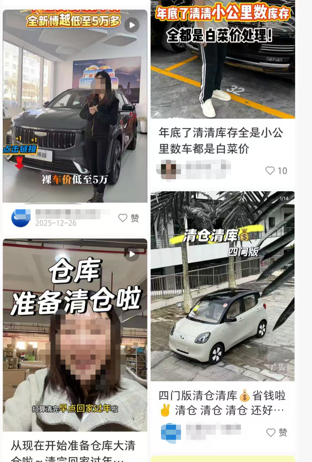 “年底清仓,0公里跑车半价开回家!”“清库进行时,错过等一年。”