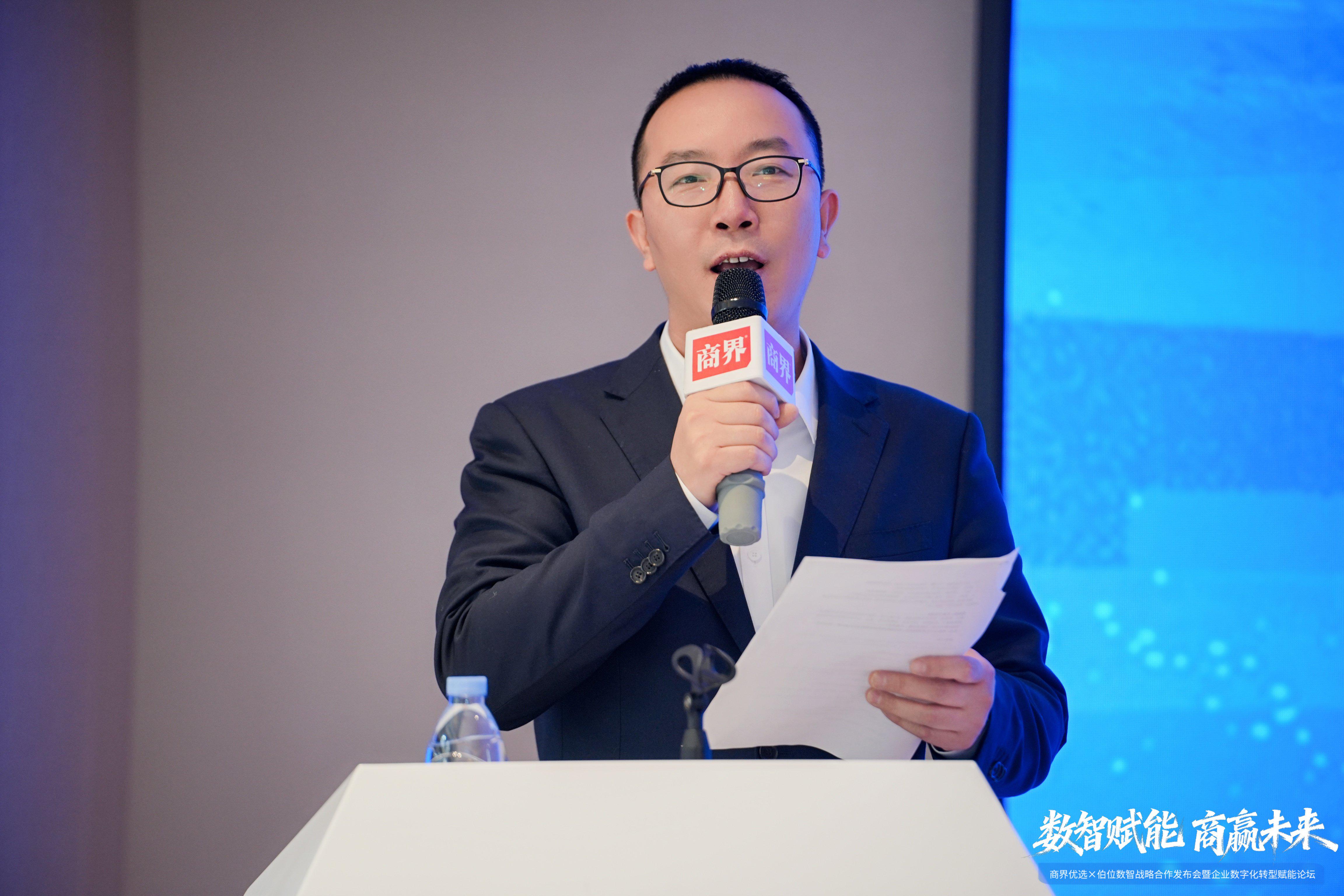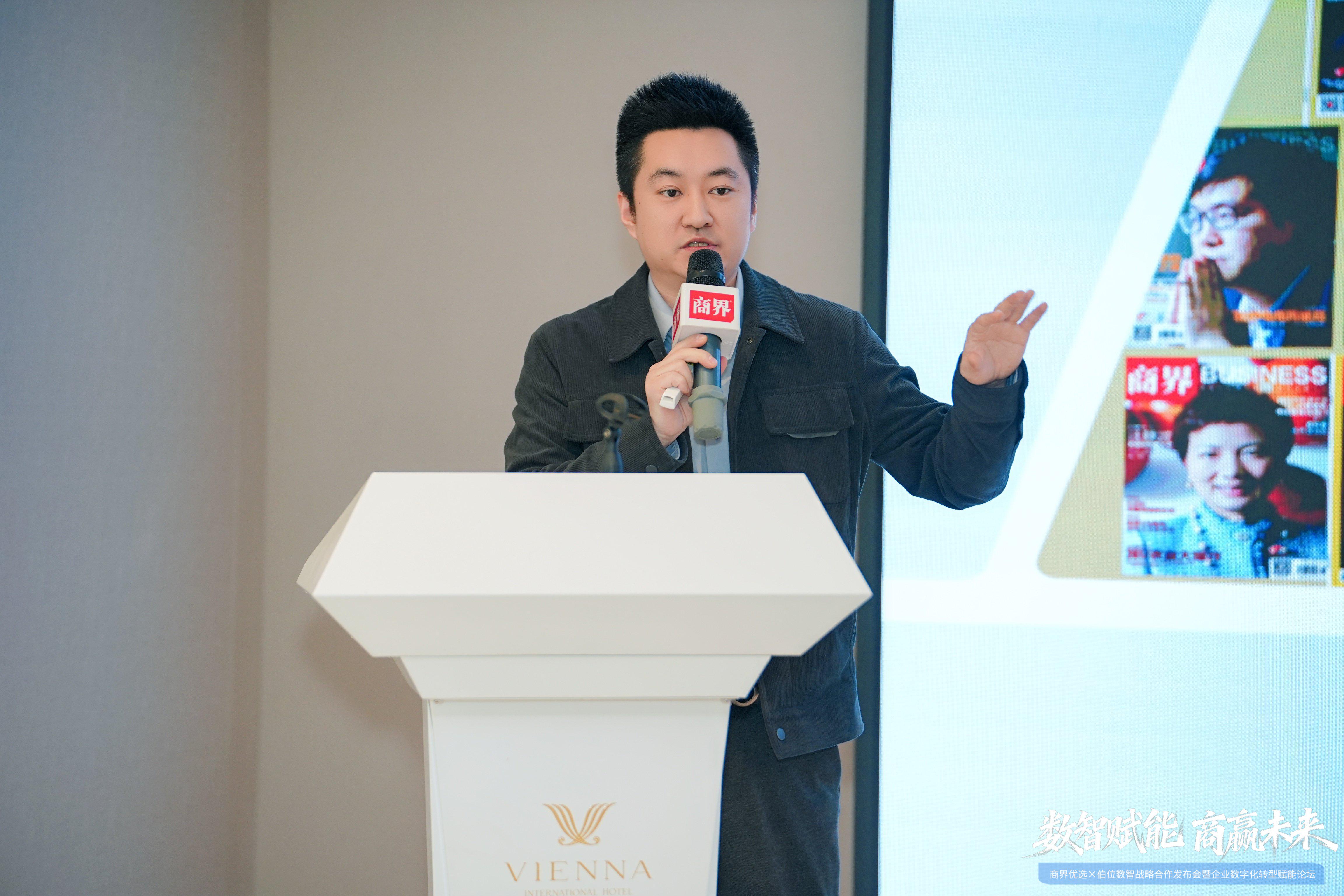 商界集团董事总经理崔少在分享中强调了《商界》作为商业媒体的核心使命,商界优选在企业数字化转型中“链接优质资源、传递权威价值”的深度赋能作用,并详解了与伯位数智资源互补的合作逻辑—“品质商业+数字普惠”,他指出:“数字化转型不是少数大企业的专属,而是所有企业实现高质量发展的共同路径。本次合作将打破资源壁垒,让更多中小企业享受到数字化红利。”