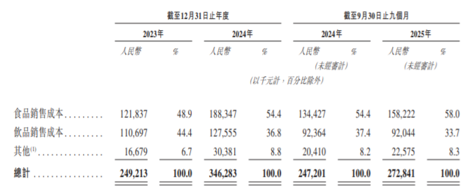 而食品的成本占到了58.0%,饮品的成本却只占到33.7%