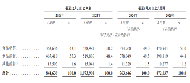 招股书显示, COMMUNE有54.0%的营收来自卖食品,44.8%的营收来自卖饮品。