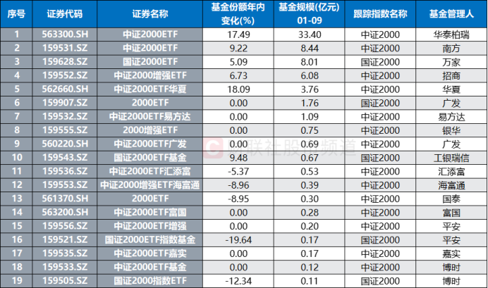 注:国证2000、中证2000系ETF年内份额变动情况(截至1月9日数据)