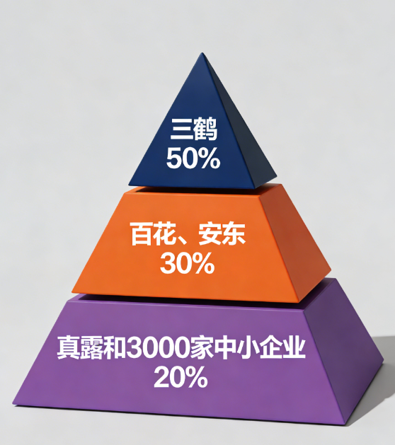 这像极了今天的中国白酒市场:茅台、五粮液等前六大品牌吃掉了近70%的市场和86%的利润,全国800多家中小酒企在存量市场里挣扎求生。
