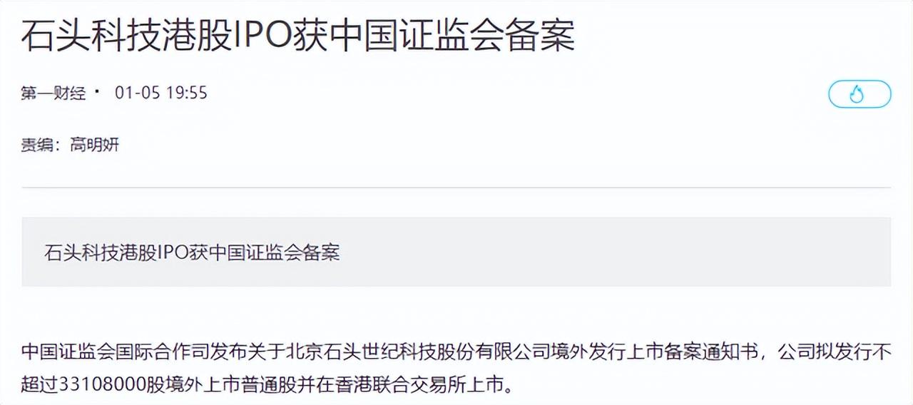 据《第一财经》等多家媒体报道,2026年1月5日,石头科技已收到中国证监会出具的《境外发行上市备案通知书》,正式启动港股IPO征程。值得一提的是,这份备案通知书的落款日期是2025年12月24日,意味着石头科技已经获得境内监管的关键通行证。