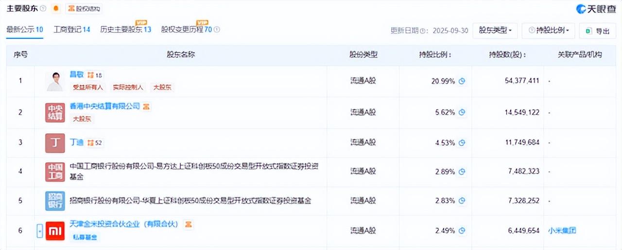 与此同时,机构投资者也在撤离。小米系资本天津金米投资持股比例从2023年的6.17%逐步降至2025年9月的2.49%,累计退出获利超40亿元。产业资本和财务投资者的同步减持,向市场传递了强烈的看空信号。