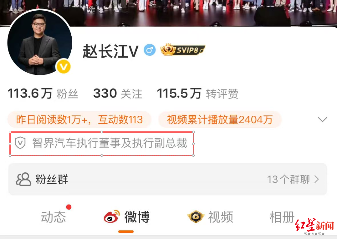 其微博认证已改为:智界汽车执行董事及执行副总裁。