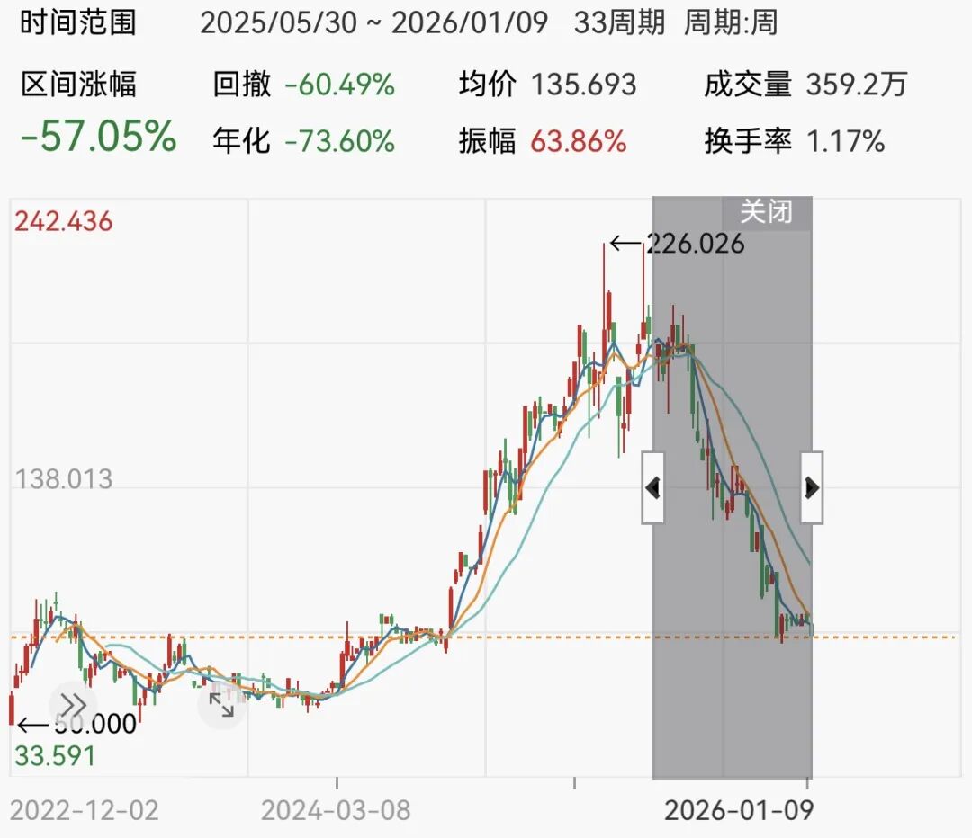与此同时,自2025年下半年起,港股市场上的奇富科技却走出了一条陡峭的下行曲线——股价从年中高点一路滑落,累计跌超57%。