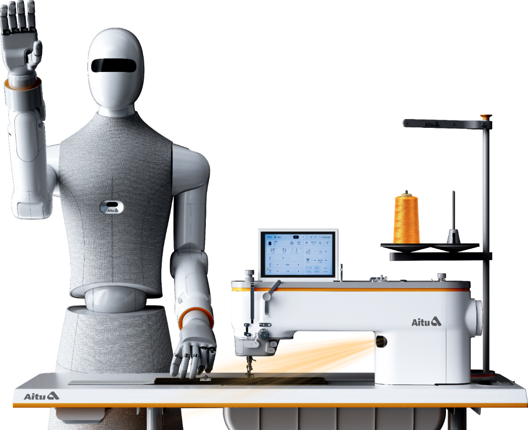 2025年,我们发布了世界上第一台AI缝纫机。它能够掌握人的手势,因为人的手势决定了生产质量和生产效率,它就像一个最好的老师,可以教会一个新员工快速上手操作缝纫机,让服装生产操作更简单。过去,一个新员工要通过几个月培训才能够做这个工作,但有了这台AI缝纫机,一名新员工用三个小时就能学会。