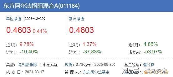截止到2025年12月29日,该产品最新的单位净值只有0.4603元,累计净值同样徘徊在这个数字上。