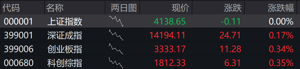 沪指微幅低开,深成指高开0.17%,创业板指高开0.34%,科创综指高开0.35%。