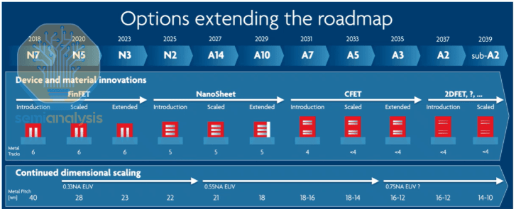 根据Imec公布的路线图,存在两个关键的转折点: