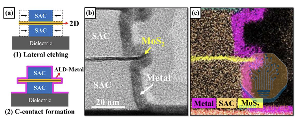此时,接触几何形状不再是次要细节,因为它决定了能否大规模重复构建“良好接触”方案。最佳接触几何形状仍存在争议,纯粹的顶接触或纯粹的边缘接触结构在生产中难以稳定实现。一些研究提出C型接触、混合型或组合型拓扑结构作为可制造的途径,第一性原理计算表明,类似C型接触的结构(包括非范德华夹层接触)具有更优的性能。发展方向很明确:业界正趋向于以可制造性为导向的折衷方案,理论理想不再那么重要,能够克服工艺偏差并提供可接受的电阻率的几何形状才是关键。