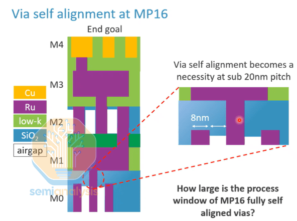 在 16 纳米间距下,通孔的关键尺寸 (CD) 约为 8 纳米,间距也为 8 纳米。如此小的尺寸带来了巨大的挑战:
