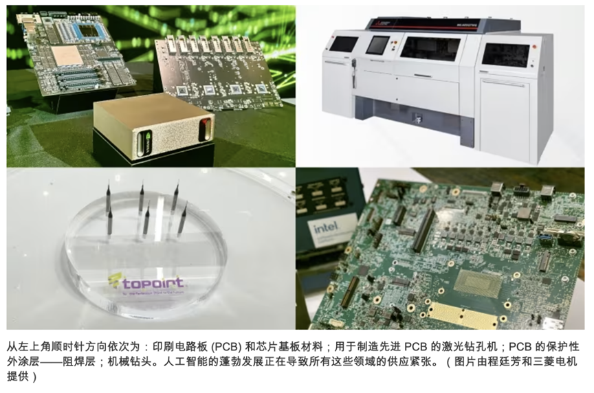 多位业内人士都提到了一个例子,那就是用于在服务器印刷电路板上钻孔的钻头和钻床。过去,一个钻头可以重复使用多次,但人工智能服务器电路板变得更厚、更硬、更昂贵,这意味着钻头必须更加先进,更换频率也必须更高。