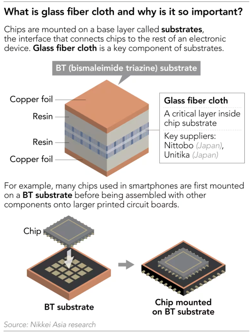 但知情人士表示,该领域的技术准入门槛极高——每根玻璃纤维都比头发丝细得多,而且必须完美圆润、不含任何气泡——新进入者难以达到足够的产能和稳定的质量。业内高管告诉《日经亚洲》,没有哪家科技巨头愿意冒险将高端芯片安装在可能影响最终产品质量的基板上。