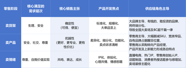 马斯洛需求层次理论也对应了零售商三个阶段的定义: