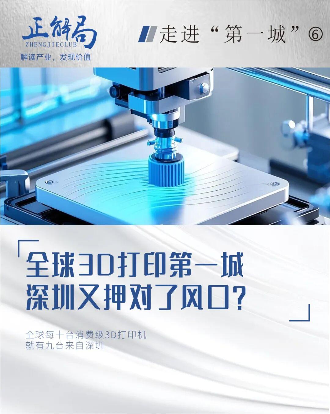 这意味着,全球每十台消费级3D打印机中,就有九台来自深圳。