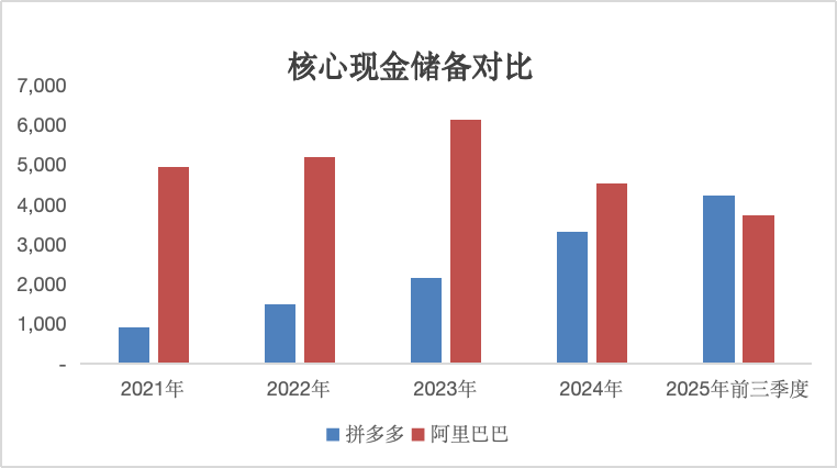 在2025年三季度财报中,拼多多的核心现金储备飙升至4238亿元,正式超越阿里巴巴,跃居中国互联网“现金之王”。