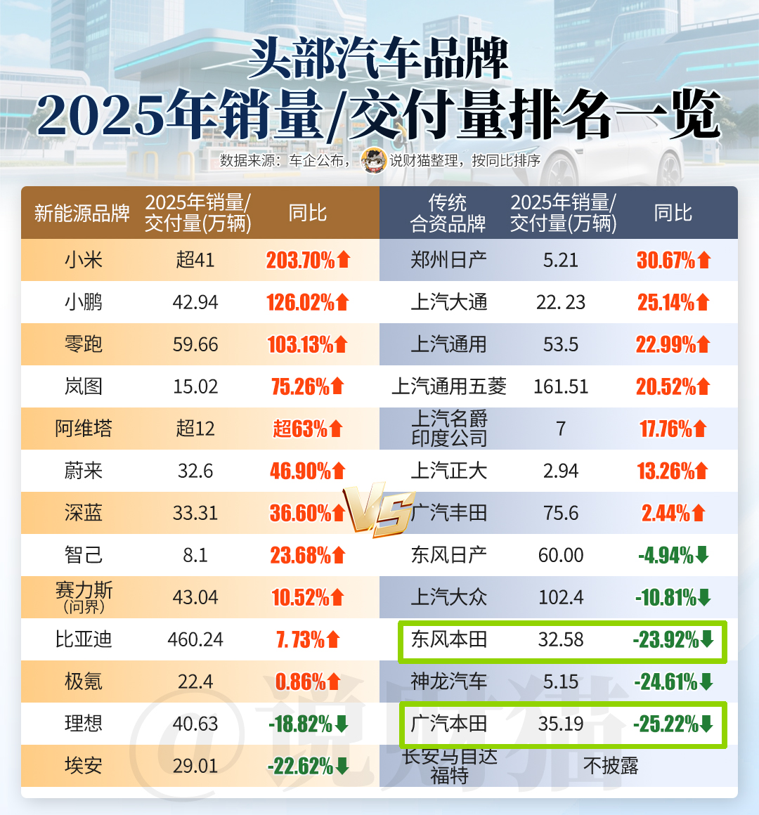 日系车则出现很大分化,24年丰田崩了,25年轮到本田崩……