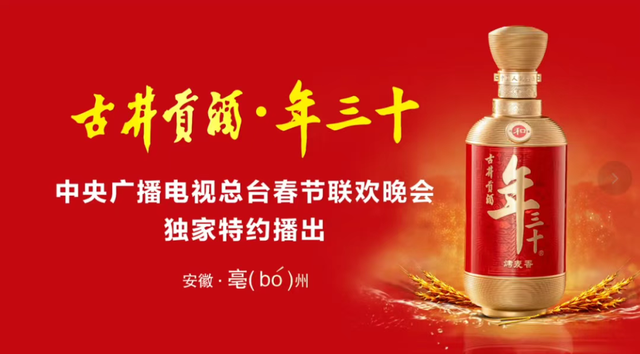 2016年,古井贡酒成为中央广播电视总台春晚的特约合作伙伴,同时推出此后广为流传的口号“过大年,喝古井,看春晚”,让古井贡酒成为春节不可或缺的记忆符号。