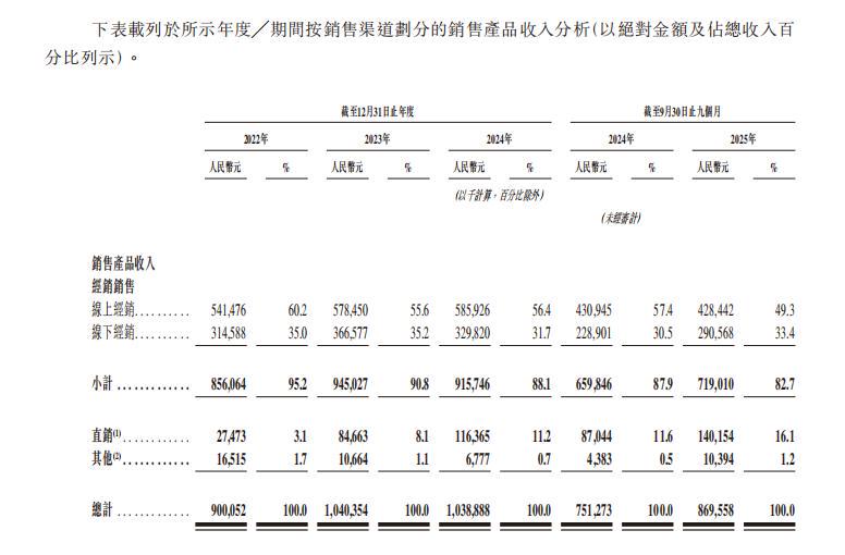 据SKG未来健康招股书,从2022年到2025年前九个月,其线上经销占比从60.2%降至49.3%,线下经销占比则从35.0%微调至33.4%。当线上经销占比走低而直销占比上升时,渠道话语权或未必会向品牌倾斜,反而可能集中于平台规则、内容分发与投放效率。