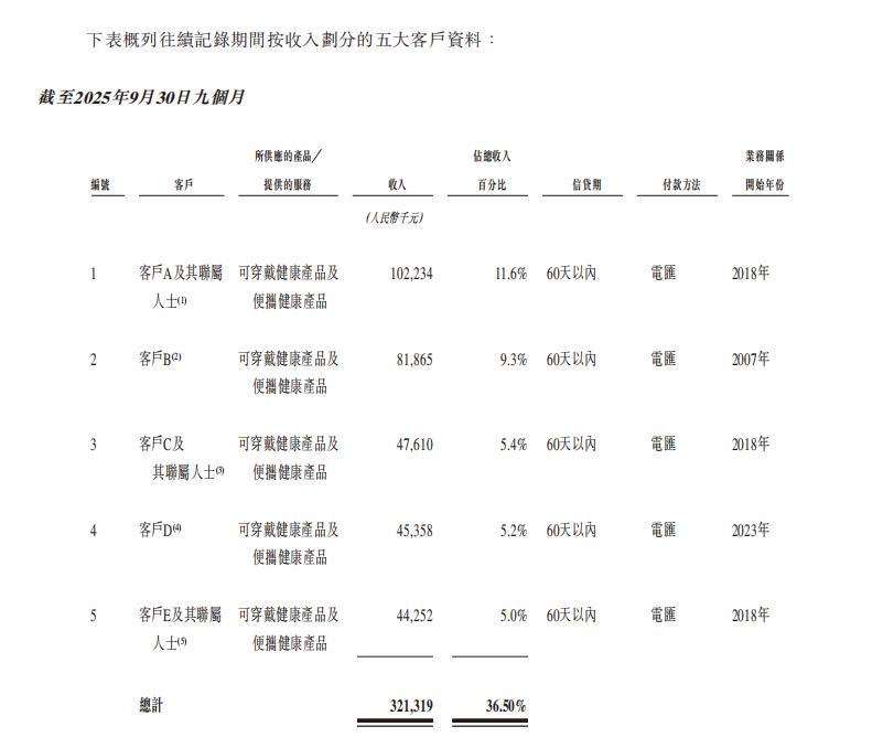 客户集中度的变化,则是渠道策略变化的另一面。据其招股书,SKG未来健康于2022年、2023年、2024年及截至2025年9月30日止九个月,其五大客户占其于各期间总收入的49.2%、52.0%、44.4%及36.5%。SKG未来健康于2022年、2023年、2024年及截至2025年9月30日止九个月,最大客户占其收入约13.4%、16.4%、14.0%及11.6%。