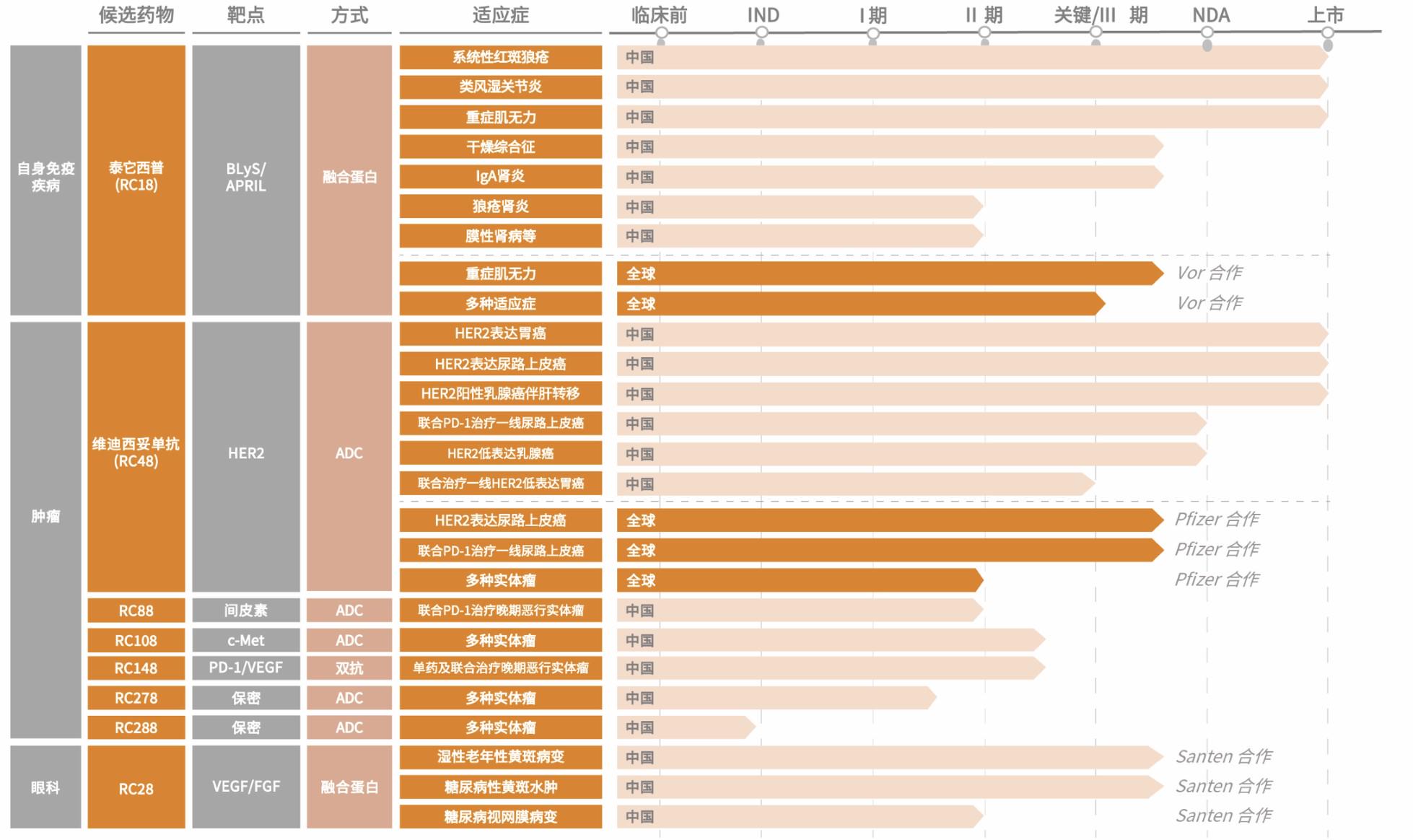 荣昌生物在研管线及BD授权情况(图源荣昌生物官网)