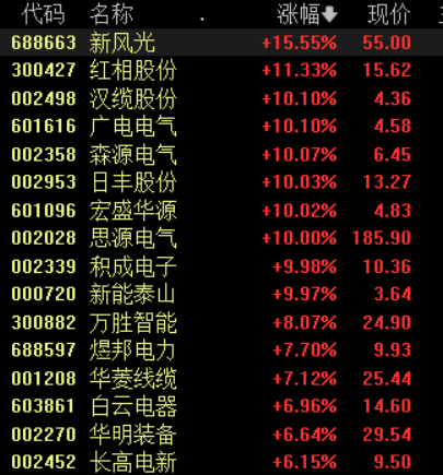 电网设备板块拉升,思源电气、积成电子、广电电气等涨停。