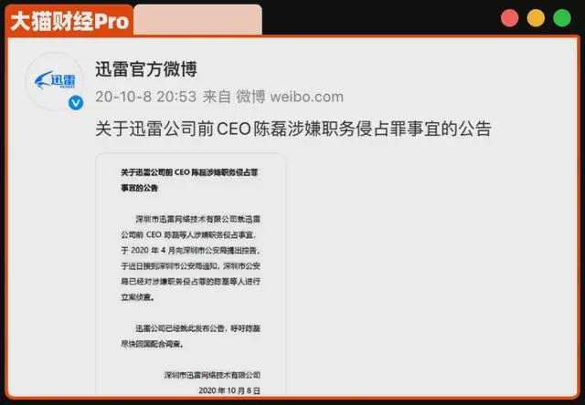 迅雷又把前任CEO陈磊给告了,要索赔2个亿,不过这2亿想要回来也比较难,因为陈磊早就已经跑路了。