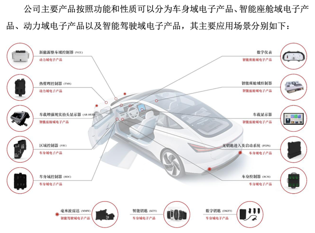 它主要制造四大类“大脑”:车身域电子产品是它的王牌和现金牛,像个 “车辆大总管”,管理车门、车灯、车窗等基础功能。它占据了公司过半的营收,2022年-2024年、2025年1-6月(下称“报告期”),该部分销售金额分别为11.92亿元、17.11亿元、19.13亿元和9.6亿元,营收占比常年超过55%。
