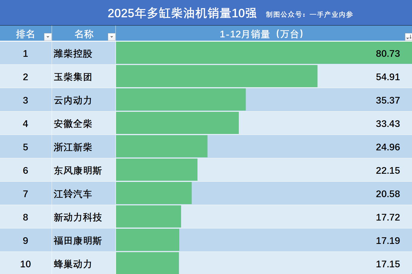 另附:2025年中国多缸柴油机销量10强厂商名单,数据源于:中内协会数据。