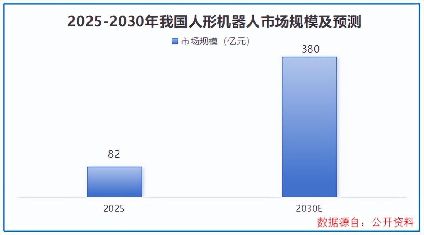 数据显示,2025年我国人形机器人市场规模约82亿元,占据全球半壁江山,预计到2030年将攀升至380亿元,增量空间足以容纳优质进入者。