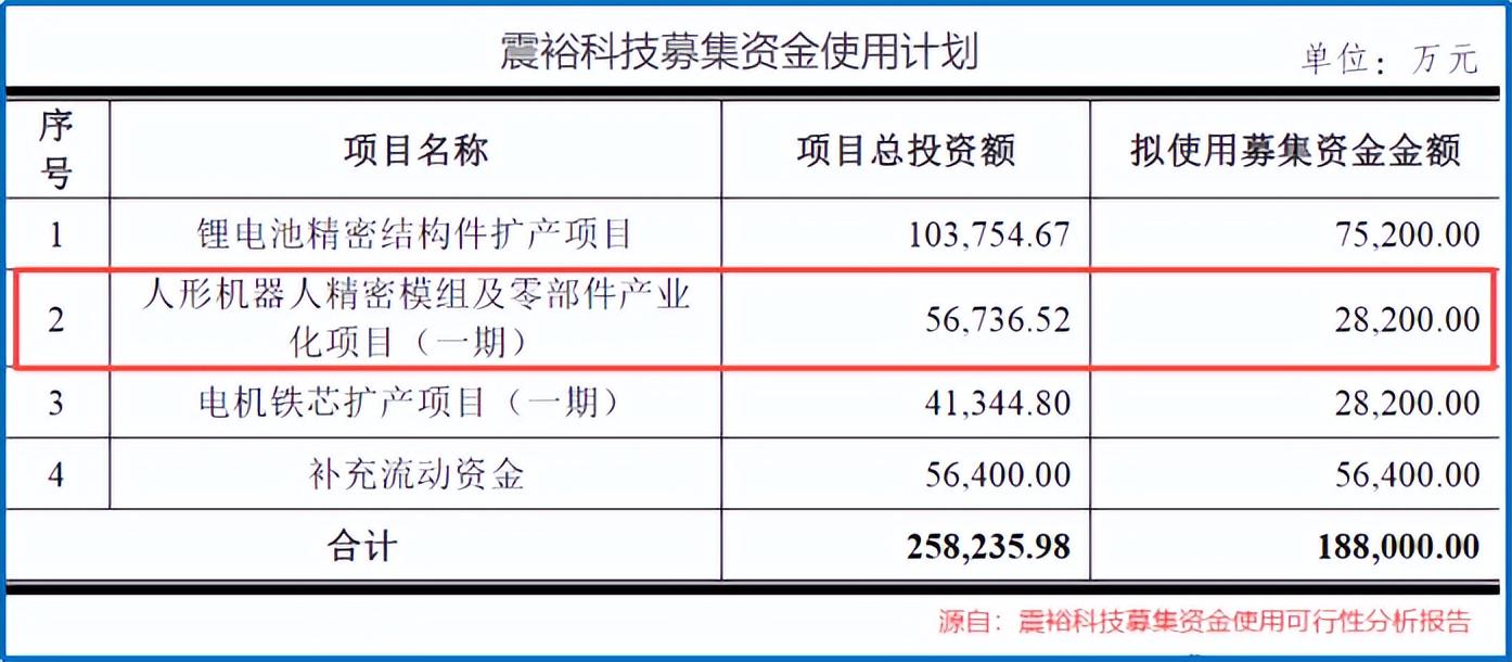 一是,拟发行可转债募资不超过18.8亿元,除巩固主业产能外,2.82亿元将投向人形机器人精密模组及零部件项目。