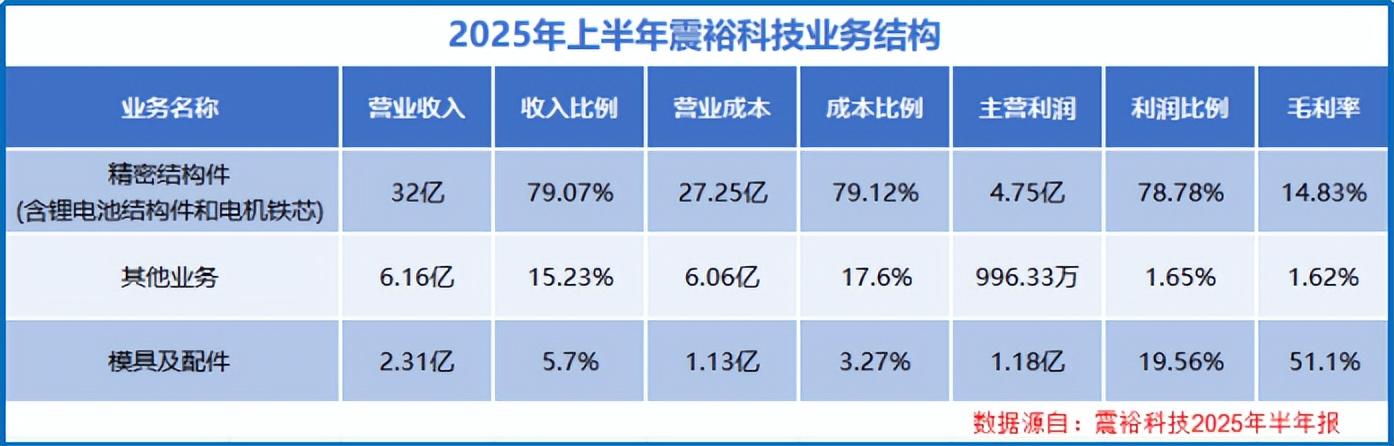 了解震裕科技的都知道,其以冲压模具起家,并纵向布局了电机铁芯和锂电结构件两大精密部件,现已形成了稳固的收入结构。