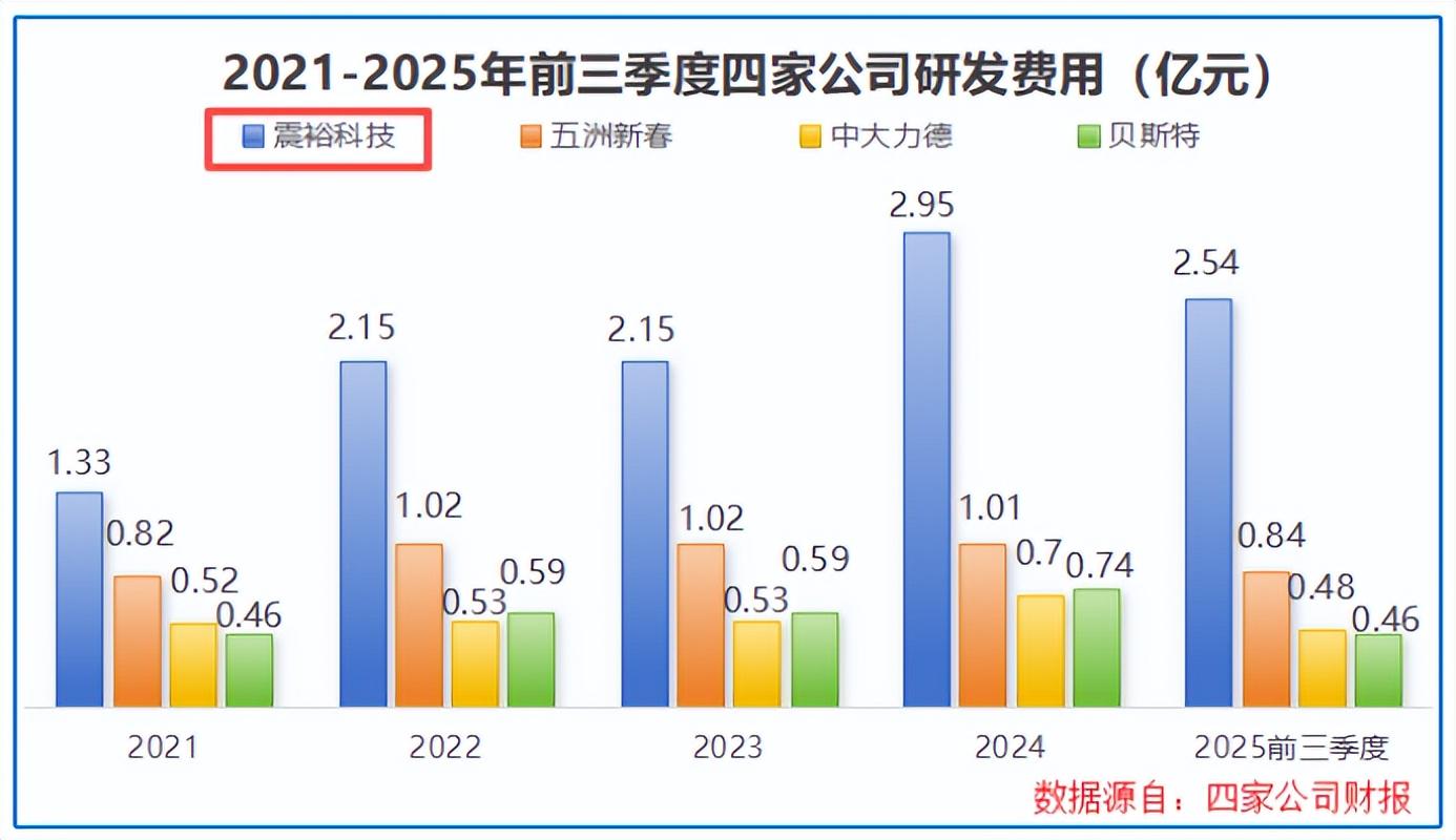 并且,公司也舍得砸钱搞研发,仅2025年前三季度,其研发费用就达2.54亿元,高于同样布局人形机器人零部件的五洲新春、贝斯特等。
