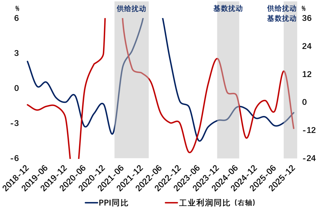 4.展望未来,整治“内卷式”竞争仍是重点任务,但近期来看行政举措更趋审慎。有色等品类扰动下,PPI环比或有脉冲,但全年维持零增速运行。历史可见,若只是低基数等统计效应或仅倚赖供给约束推升价格,都难实现利润的广谱改善,关键仍在于真实需求。
