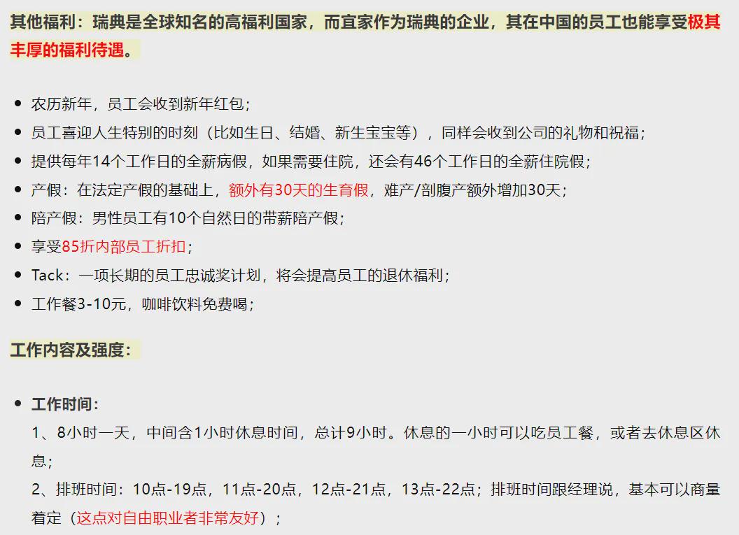 作为高福利国家瑞典的企业,宜家的员工待遇相当不错,被称为神仙外企。