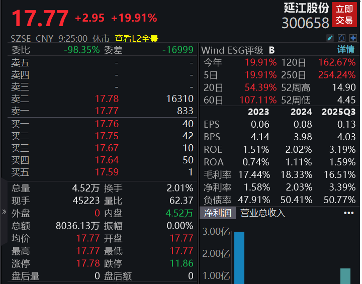 延江股份触及涨停,公司拟购买甬强科技98.54%股权。
