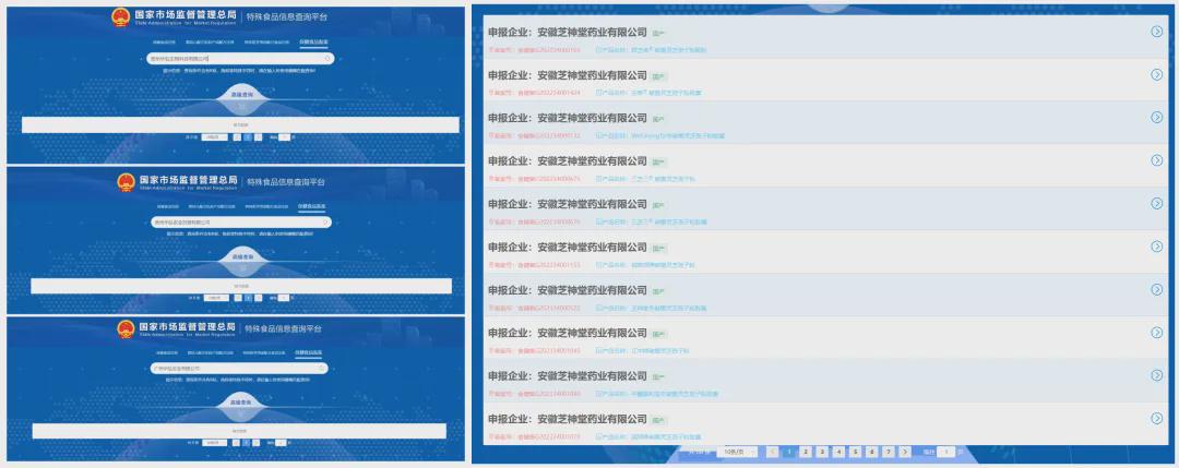 进一步在国家市场监督管理总局特殊食品信息查询平台中搜索“华弘草芝堂”,并未检索到任何以该品牌名称备案的记录。在该平台搜索“破壁灵芝孢子粉”,有1772条备案信息,这意味着该产品的保健食品备案并不难获取。