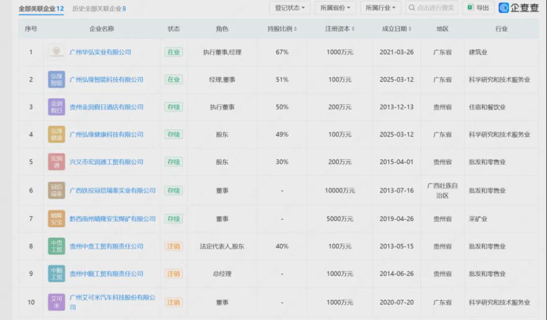 企查查信息显示,曾建宏早期主要涉足批发零售、采矿等领域,曾在贵州中贵工贸、中顺工贸,以及广西铁投冠信瑞泰、黔西南州晴隆安宝煤矿等企业任职。