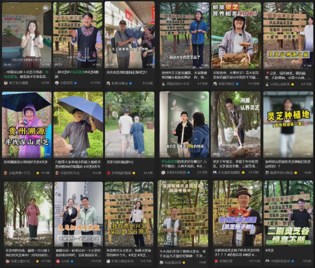 华弘草芝堂以8500亩深山灵芝谷为场景,结合季节与灵芝生长阶段,设计“寻找千年仙草”“守山人日记”等主题,通过高清画面呈现云雾环境、青冈木灵芝生长及破壁过程等场景,让观众直观了解灵芝的生长环境与采摘过程。