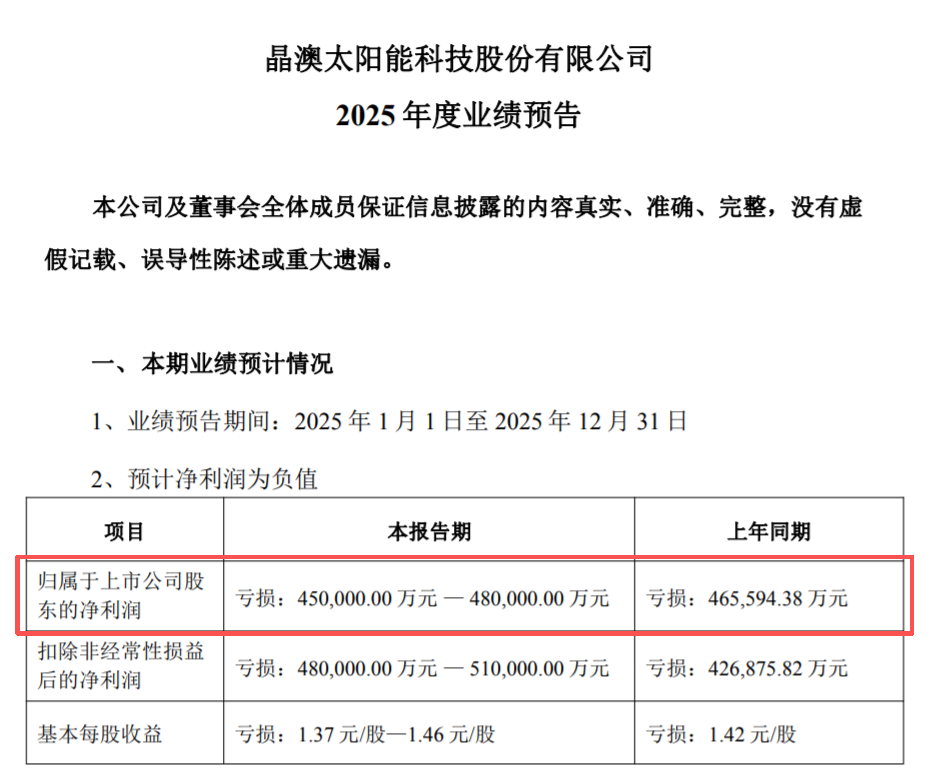 晶澳科技,预亏45-48亿;